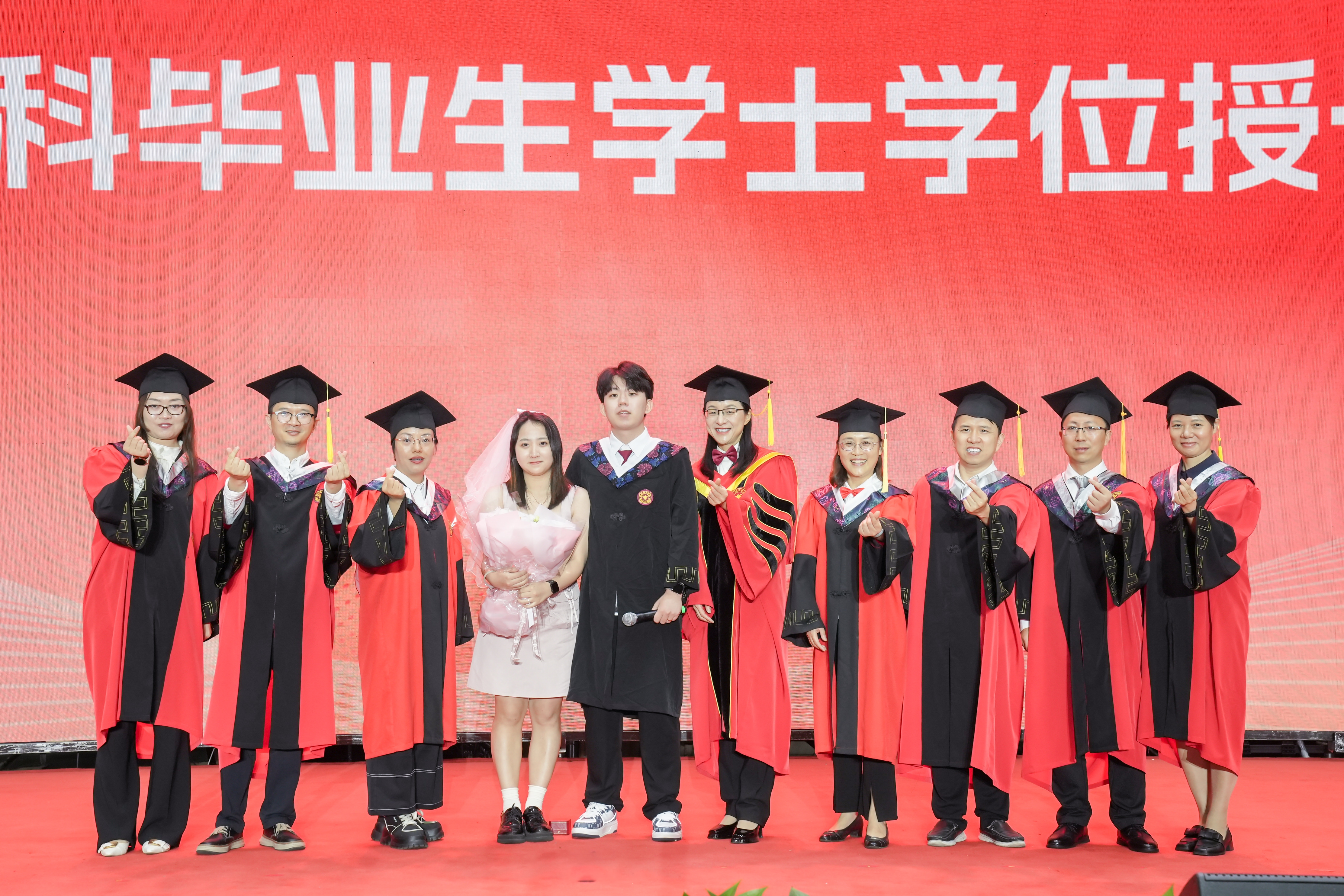 学位授予仪式在毕业典礼后隆重举行,师长为毕业生拨穗并合影留念。