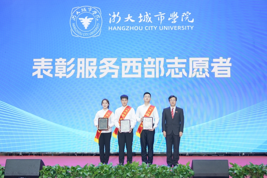 校党委书记洪庆华为服务西部志愿者颁发纪念铭牌