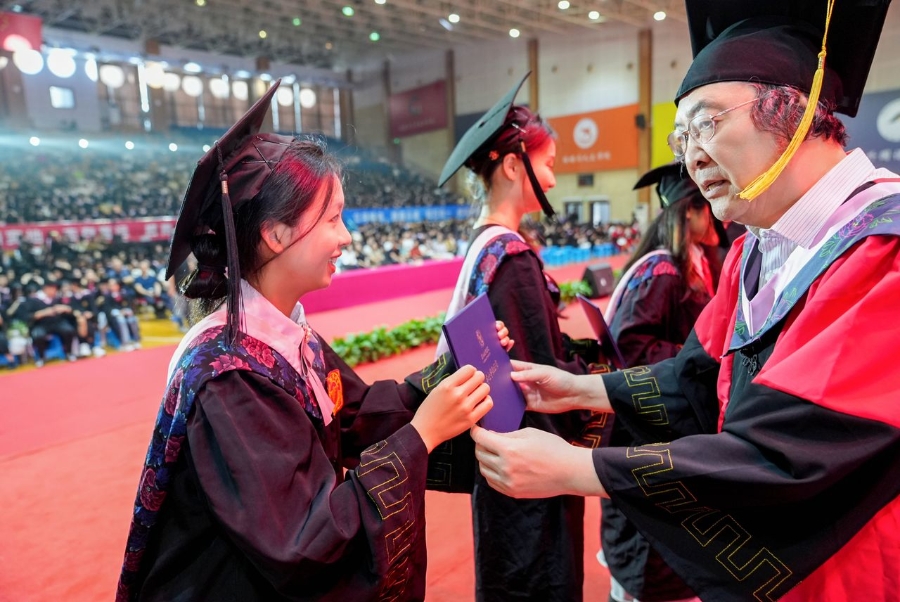 “心存感恩,创造幸福。”杨波以八字寄语与2024届毕业生共勉。她深情叮嘱同学们,一是心存感恩,体悟幸福,感恩并珍惜自己当下的幸福,坚持所爱,并培养热爱;二是终身学习,收获幸福,要坚持不懈地学习,激发潜能、超越自我;三是承担责任,创造幸福,充分发挥所学所长,投身国富民强的建设中,在不同岗位、不同舞台上施展才华、实现价值。