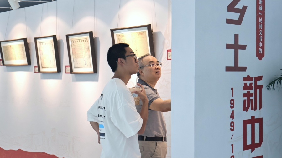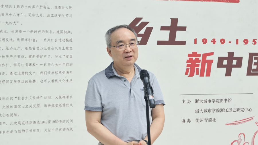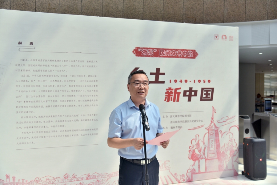 为庆祝中华人民共和国成立75周年,9月30日,由校图书馆、浙江历史研究中心联合举办的“浙藏”民间文书中的乡土新中国(1949-1959)展览在图书馆开展。校党委副书记叶桂方出席开幕式,并与师生一同观展。