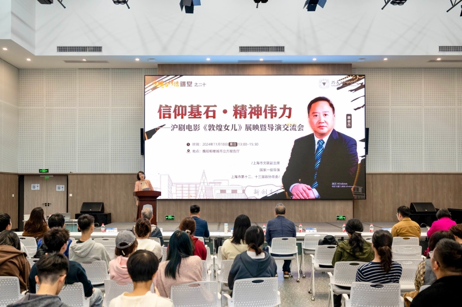 映后交流会上,滕俊杰现场分享了许多拍摄细节。提到拍摄这部影片的缘由与初心,他介绍,“我们希望能用这部大电影讲好敦煌人的故事,同时也传播好上海独有的沪剧艺术”。
