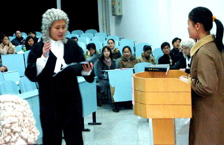 城市学院学生“法官”在自办的模拟法庭上慷慨陈述