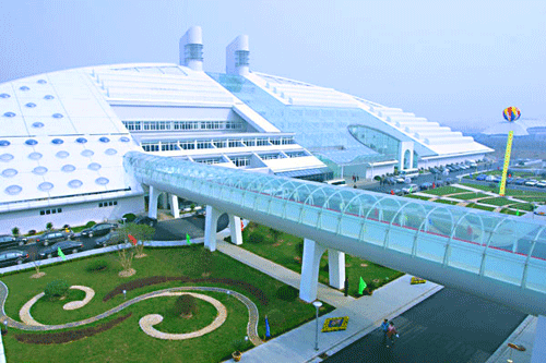 浙大紫金港校区首期建设工程日前竣工。紫金港校区工程始于2001年9月,一期规划建筑面积64万平方米,现已全部投入使用。目前有1.5万名学生在此学习和生活。紫金港校区建设体现了“现代化、网络化、园林化、生态化”的理念,配备了中央空调、宽带网、多媒体教学等现代化设施。图为造型别致的学生活动中心大楼。