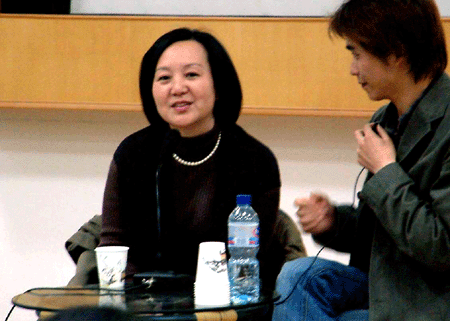 朱锦绣和在座的同学们谈到了爱情、婚姻、家庭、书吧的经营,以及对生命的感悟。对于爱情,朱锦绣依然秉着当年的纯情:爱情是世界上最美好的东西,不能用经济角度去分析爱情。当爱情和事业发生冲突时,她会选择前者。谈起她的经营理念,她说,用爱去经营书吧,用爱引起大家共鸣。